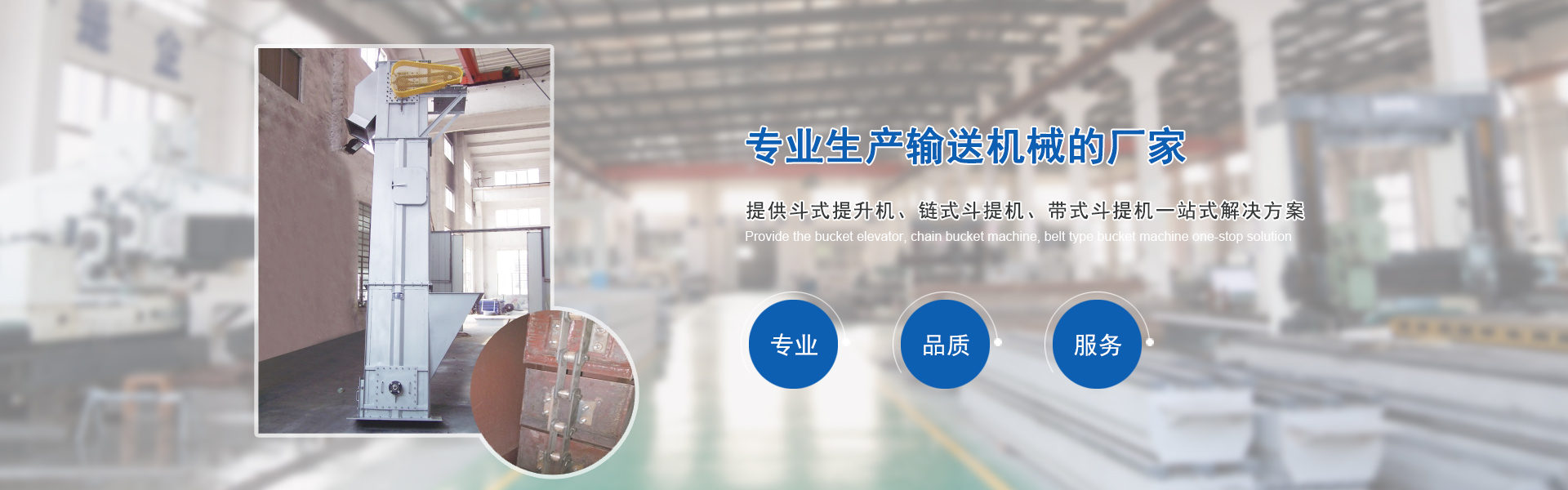 我們是專(zhuān)業(yè)生產(chǎn)輸送機(jī)械的廠(chǎng)家,主要產(chǎn)品有各種型號(hào)的斗式提升機(jī)、鏈?zhǔn)蕉诽釞C(jī)、帶式斗提機(jī)、螺旋輸送機(jī)、刮板輸送機(jī)、鏈斗輸送機(jī)、皮帶輸送機(jī)、